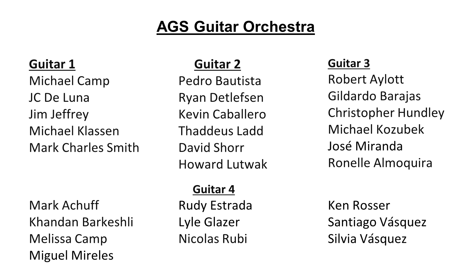 The purpose of the AGS is to promote the beauty of the Classical Guitar via Education, Scholarships, Concerts, and monthly Meetings where members perform.