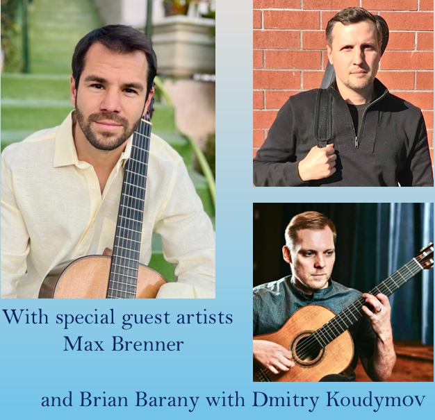 Our concert begins at 7:00pm with a performance by Max Brenner, and a performance by Brian Barany & Dmitry Koudymov.